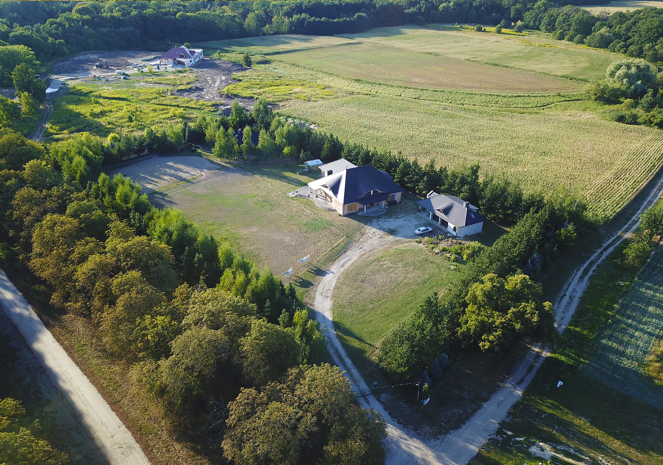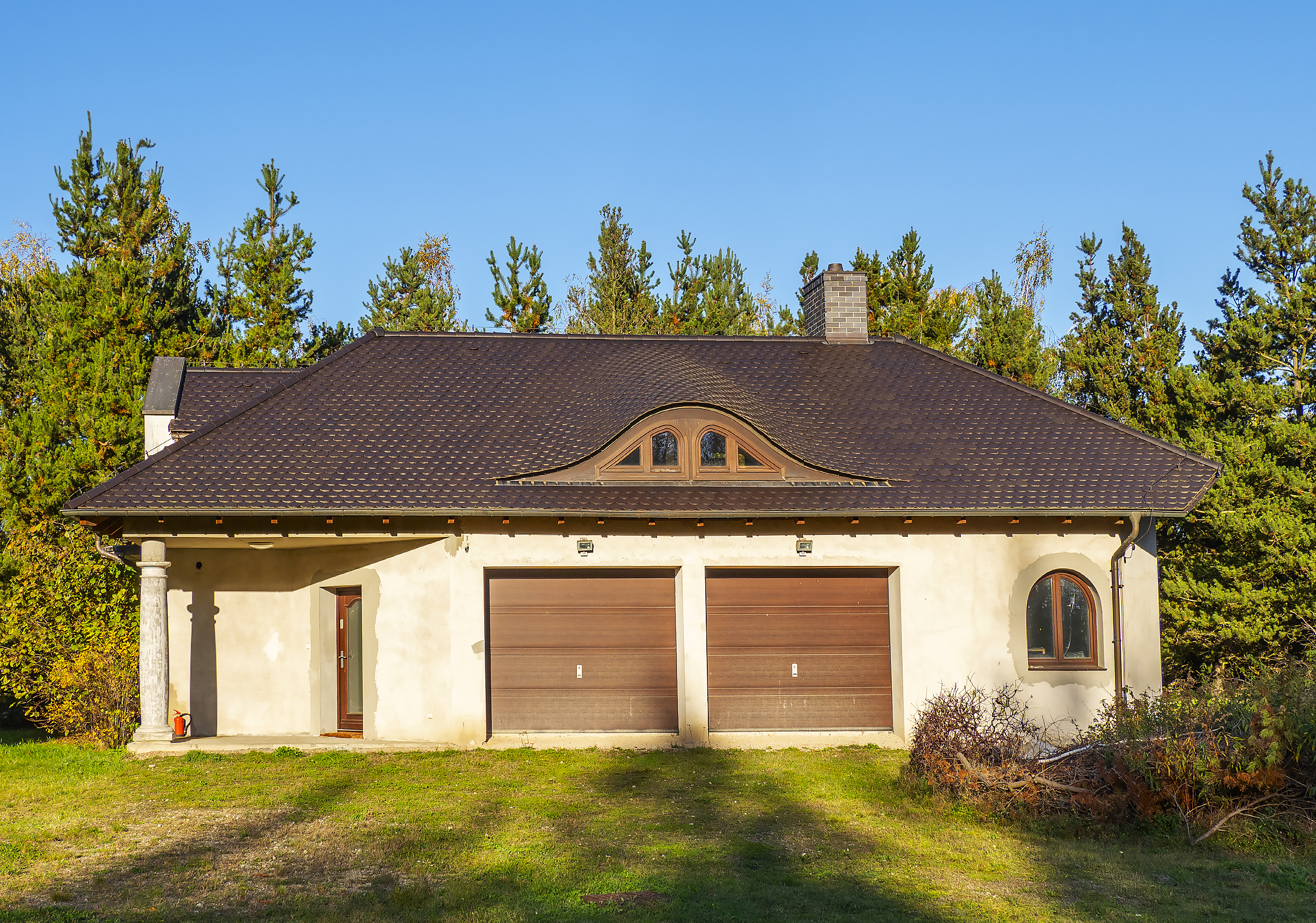 Dom w stanie surowym otwartym powierzchnia 485.1 m2 , dach jest wykończony posiada piorunochrony i okna dachowe . Jest przygotowana część basenowa do wykonania basenu lub pomieszczeń.
